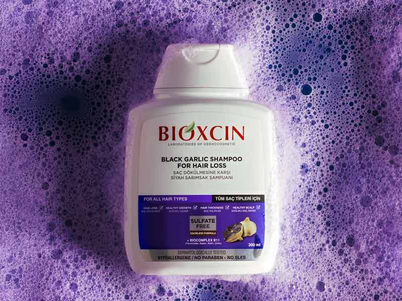 شامبو بيوكسين بالثوم الأسود غني بخلاصة الثوم الأسود 100%، وخلاصة اللبلاب، وبيبتيدات Bio-Activ، ومركب BioComplex B11 الحاصل على براءة اختراع. تركيبة متطورة تقدم عناية متكاملة للشعر من خلال المساعدة في تقويته ومنحه حجماً وحيوية ولمعاناً ومظهراً أكثر صحة.